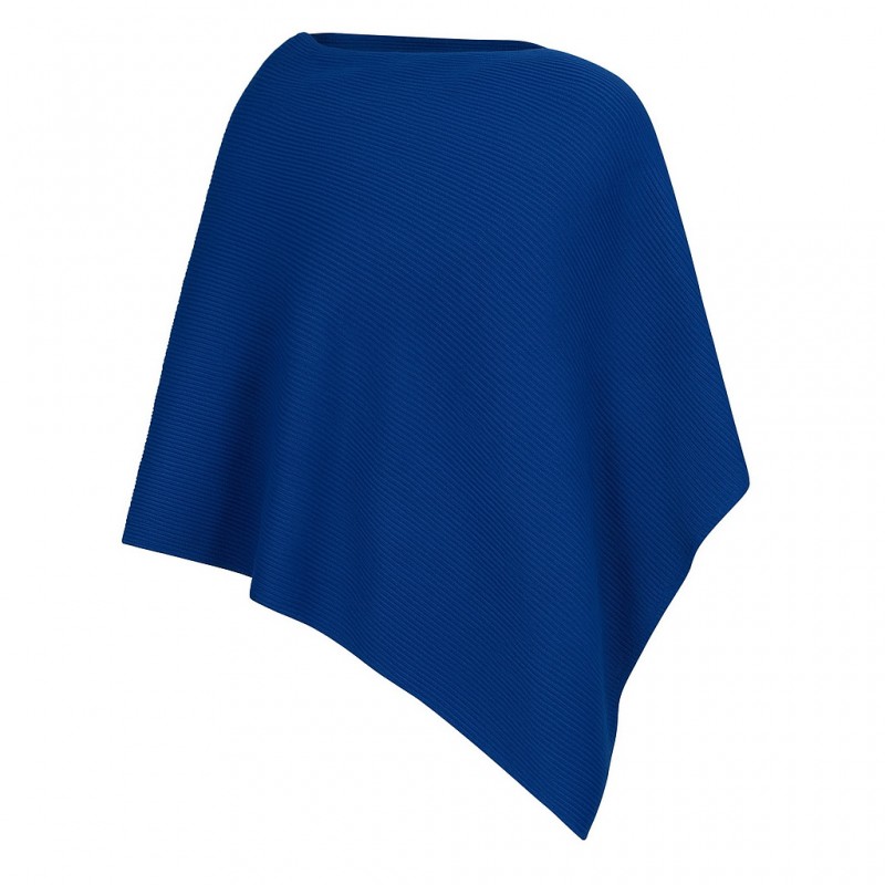 Smuk mørkeblå poncho strikket i ren cashmere. En poncho er et godt supplement til garderoben, og med det asymmetriske design kan den bæres på to forskellige måder.