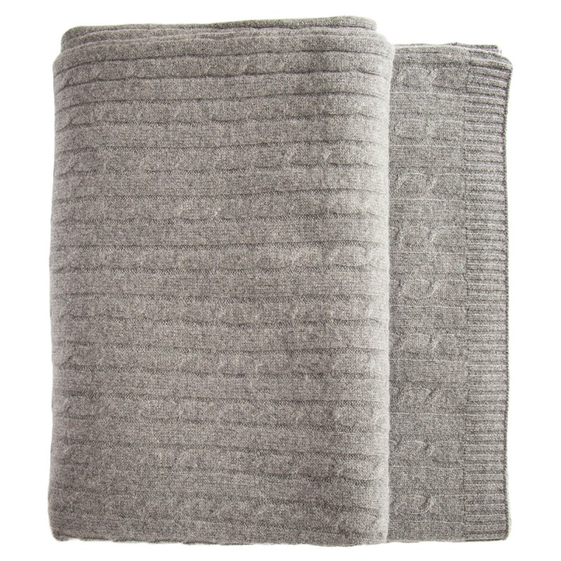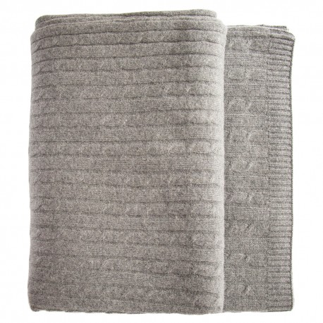 Gråt kabelstrikket tæppe i merino og cashmere.
